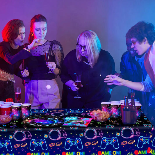 Video Game Birthday Decorations Tableware,113Pcs Game On Birthday Party Tableware Set-Video Game Birthday Plates Napkins Cups