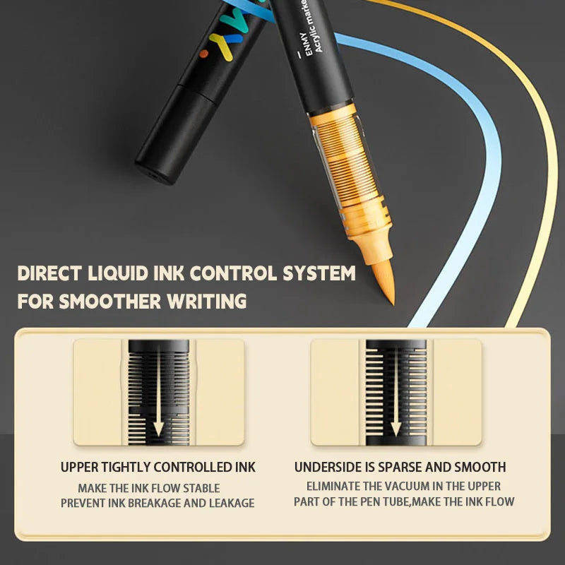 ENMY Acrylic Paint Markers Pen Soft Head Direct Liquid Graffiti Painting QuickDry Pigments Art Supplies for Felt